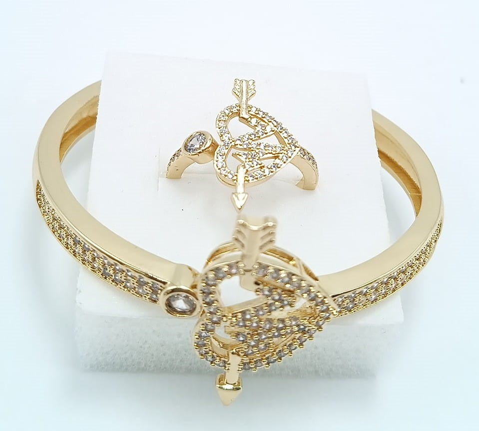 Set Brazalete con anillo rodinado con circones corazon con flecha.